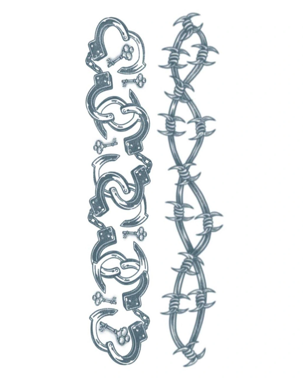 Realistische Tattoobänder mit Handschellen- & Stacheldrahtmotiv zum Aufkleben