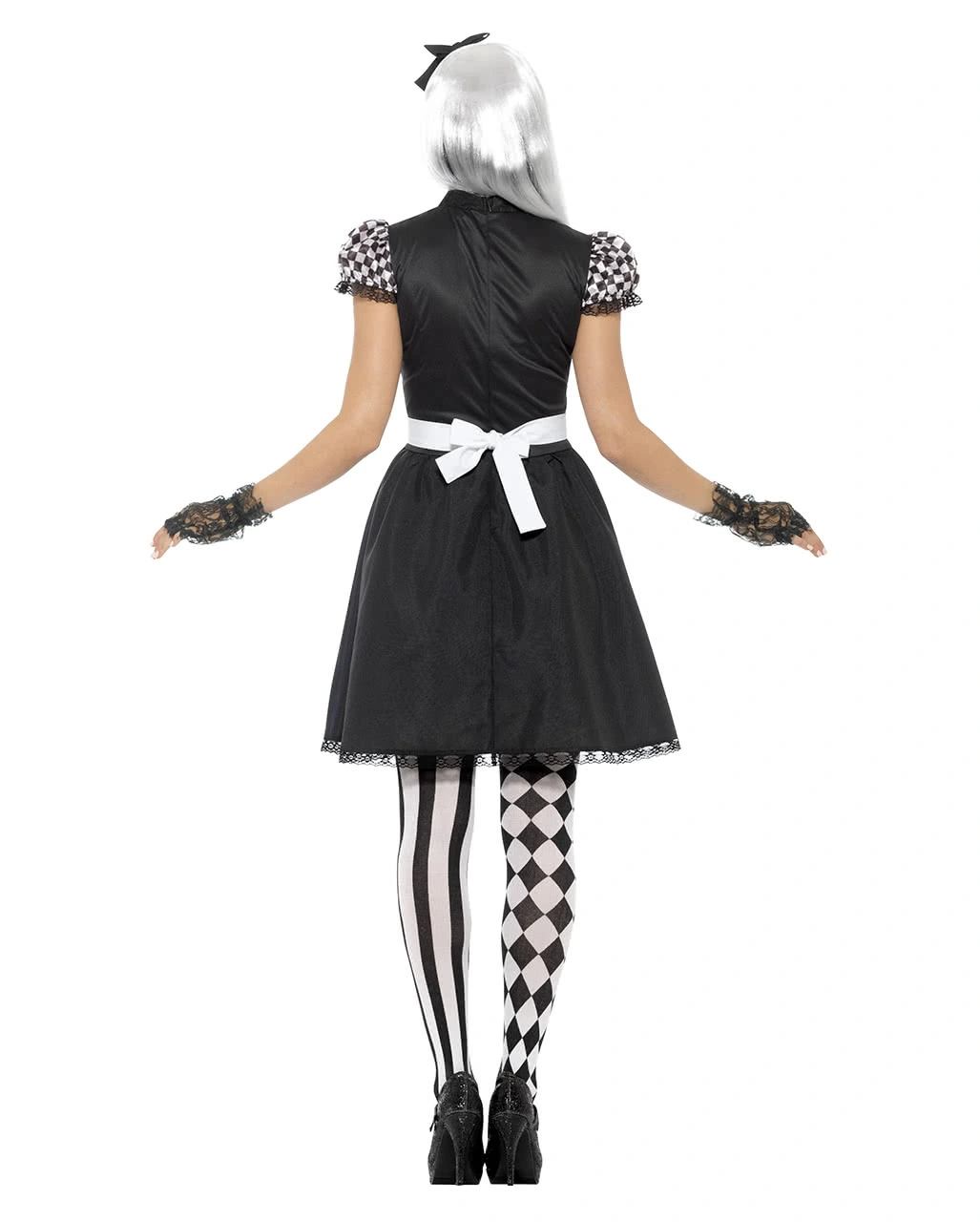 Das Gothic Alice Damenkostüm kommt als sexy Kleid mit verschwommenen Karos, Puffärmeln und Spitze am Dekolleté daher. Im Lieferumfang sind ebenfalls die weiße Schürze mit Spitze und Uhr-Motiv sowie ein Haarreif mit schwarzer Schleife enthalten. Ergänze dein Kostüm mit der Gothic Alice Perücke Deluxe und den Alice Overknees.