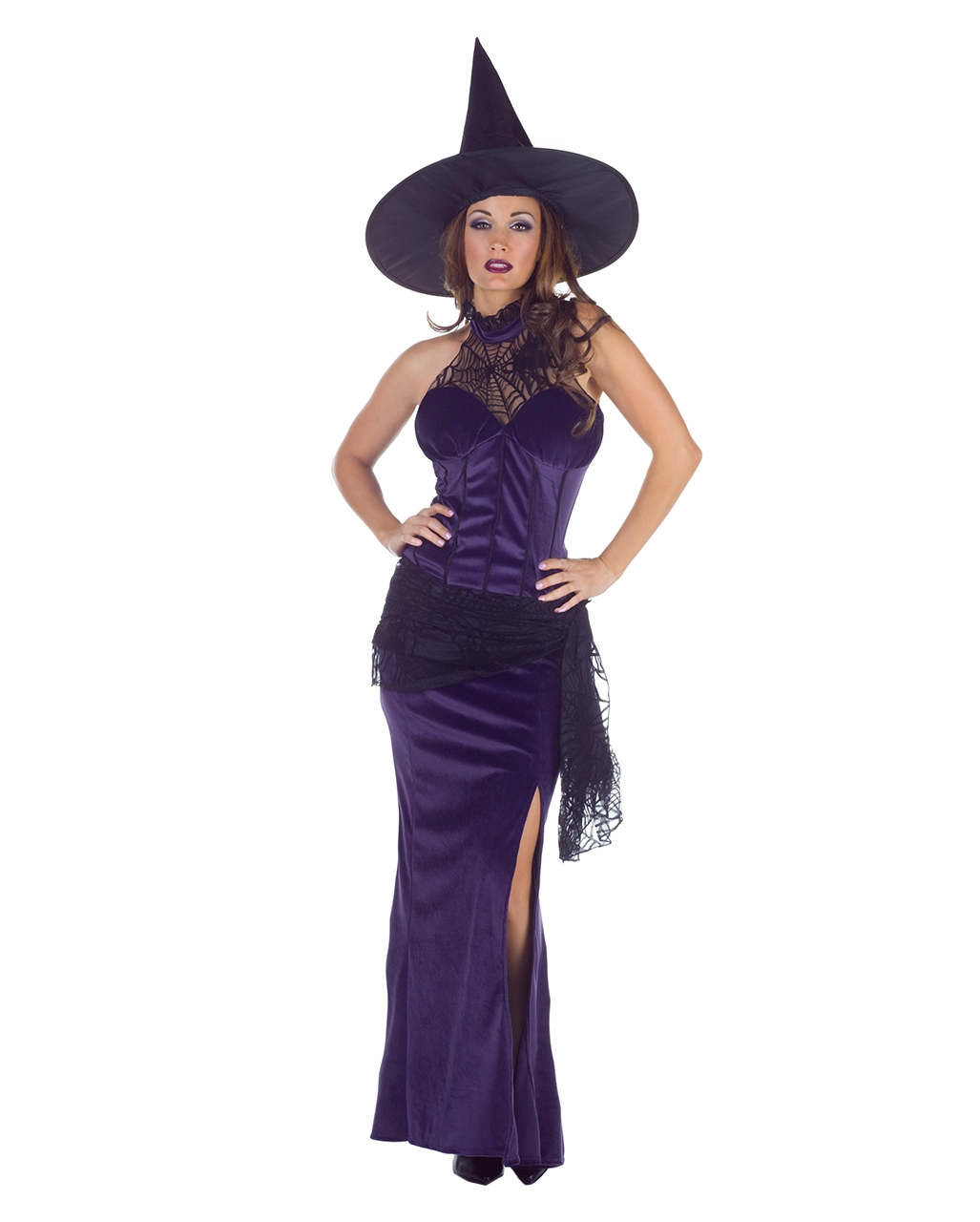 Klassisches Halloween Kostüm mit Hexenhut & Spinnenetz Tuch