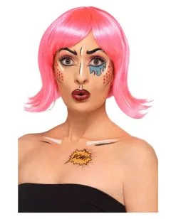 Dein Gesicht als Kunstwerk, das alle bestaunen. Mit dem Pop Art Make Up Kit gelingt das spielend leicht. Es ist 10-tlg. und hat alles, was Du brauchst. Auch Pinsel und Schwamm sowie eine Schablone und ein Aufklebe Tattoo sind darin enthalten. Die 5 Make-up Farben bilden die Basis, mit der Du Dein Gesicht in den Pop-Art typischen Look einer Comic-Figur verwandeln kannst. Der schwarze Schminkstift sorgt für die Akzente wie zum Beispiel die aufgemalten Augenbrauen und die scharfen Konturen an Wangen und den Lippen. Damit wirst Du zum Star Fasching oder auf der Motto Party. Als Kostüm-Accessoire empfehlen wir zum Beispiel die Lou Lou Bob Perücke Pink.