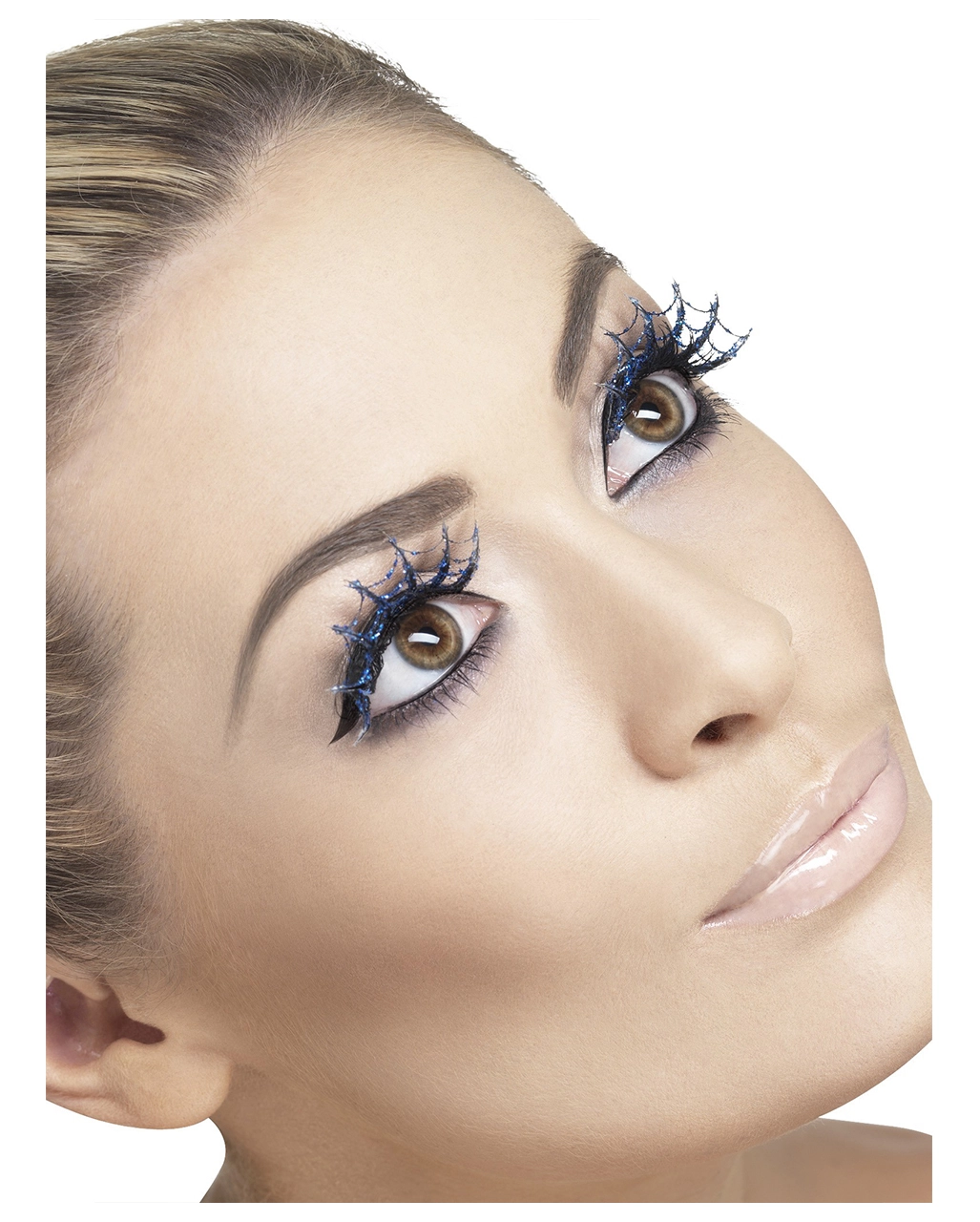 Die Spinnweben Wimpern glitzern bei jedem Augenaufschlag und sind in einem schönen, dunklen Blau gehalten. Diese extravaganten Aufklebewimpern kannst du zu dem Spinnen Königin Kostüm Deluxe oder der Stylische Damen Perücke schwarz kombinieren.