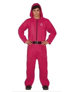 Das Squid Game Kostüm Aufseher ist für Erwachsene in M und L-Größe erhältlich. Er besteht aus reinem Polyester, liegt weich auf der Haut und fühlt sich sehr leicht an. Am roten Wärter Overall befindet sich eine Kapuze. Kombiniere die Squid Game Verkleidung mit der Squid Maske Dreieck Deluxe. Fertig ist dein markanter Wärter-Look!