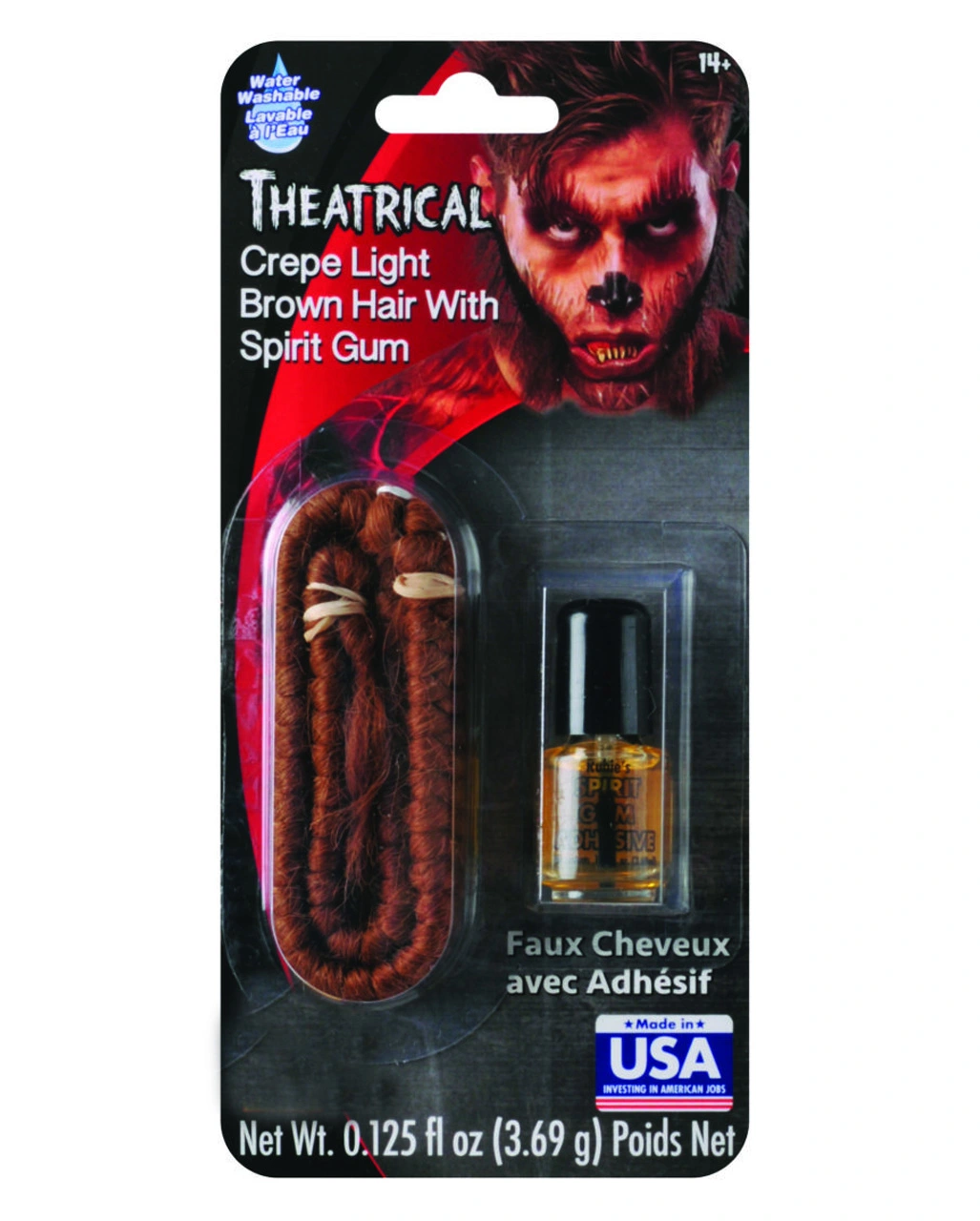 An Verwendungsmöglichkeiten für unser hellbraunes Theaterhaar mit Hautkleber mangelt es nicht. Das gekräuselte Spezial Make-up Zubehör ist zu einem Zopf geflochten, was es leichter dosieren lässt. Mit dem mitgeliefertem Hautkleber wird das Kunsthaar dann an die entsprechende Stelle montiert.