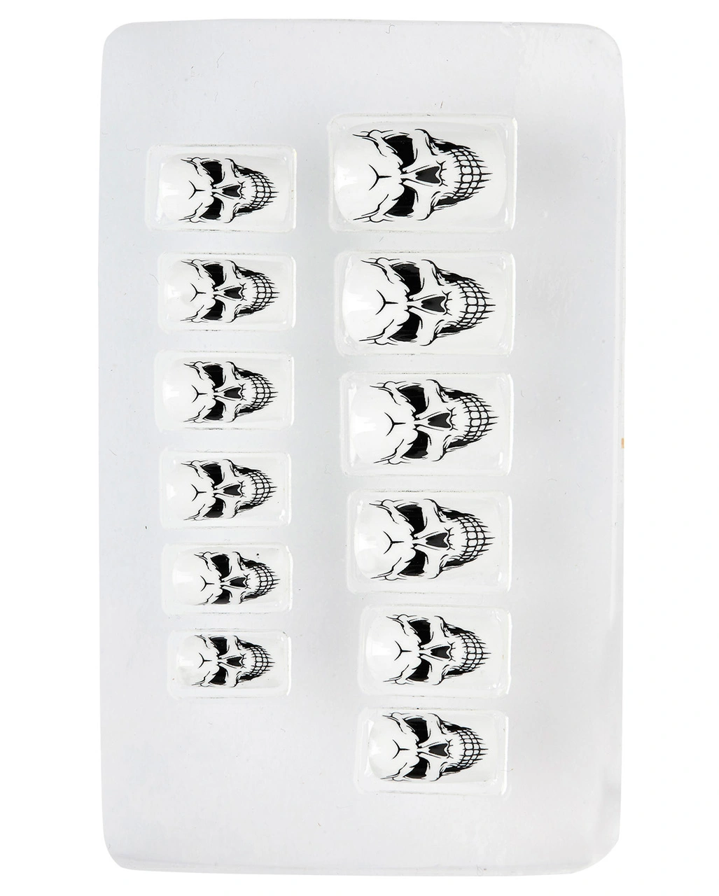 Selbstklebende, schwarz-weiße Fingernägel mit Totenschädel als Motiv